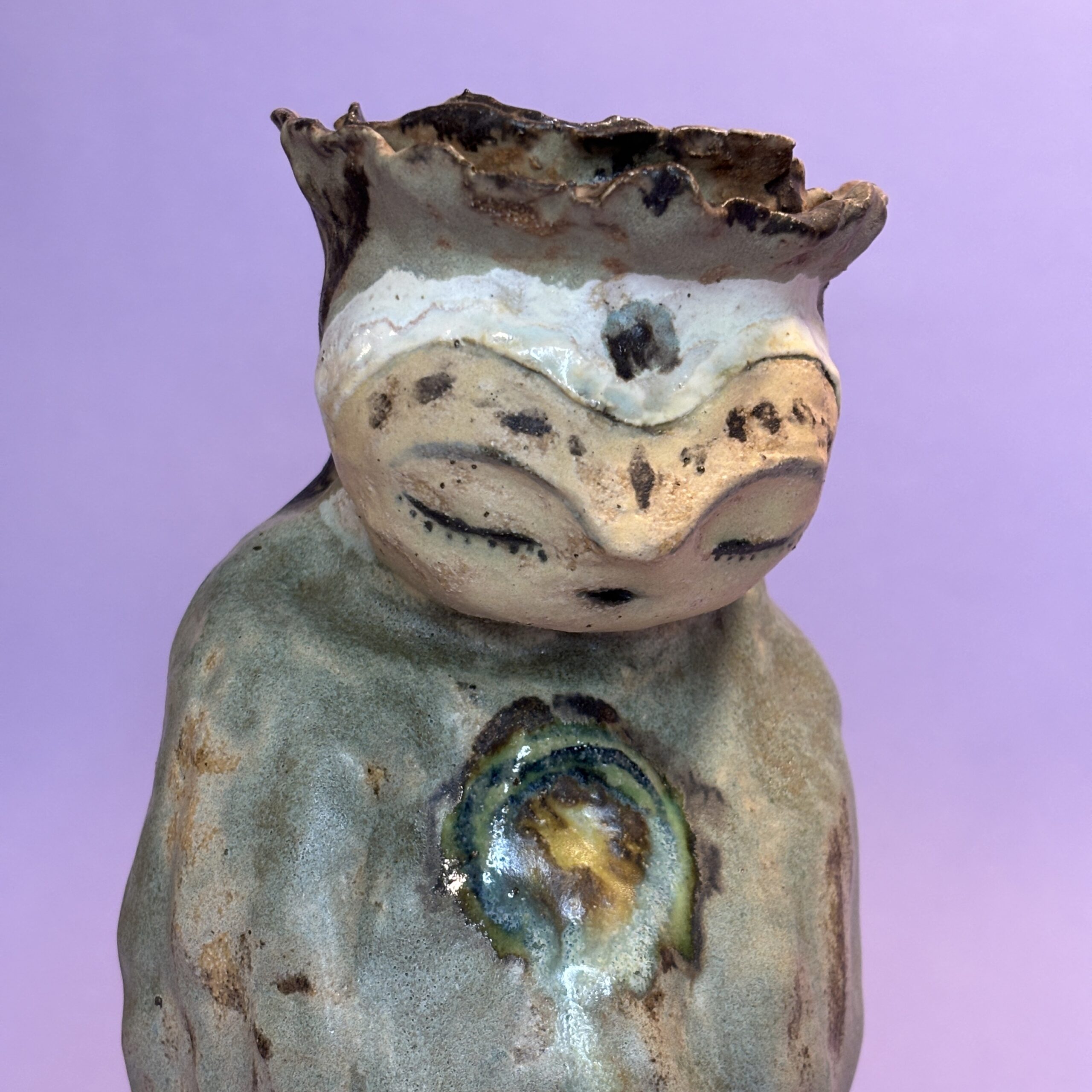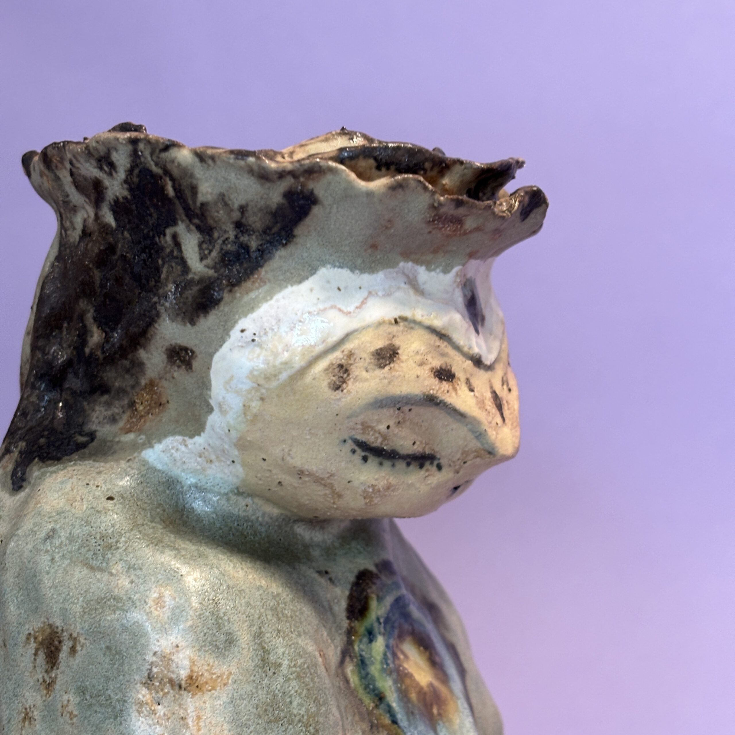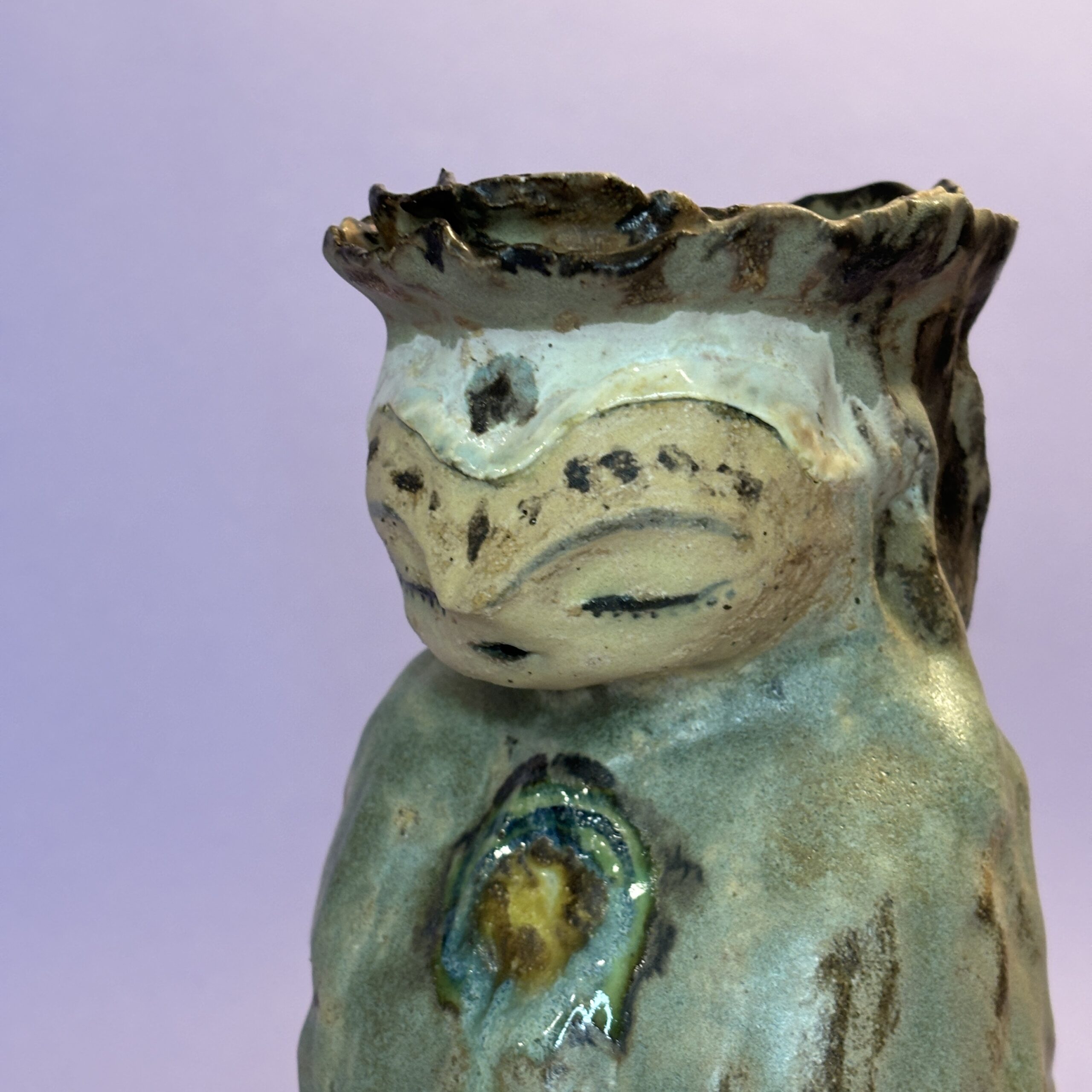 Figuren er håndmodelleret og dekoreret med glasur.
