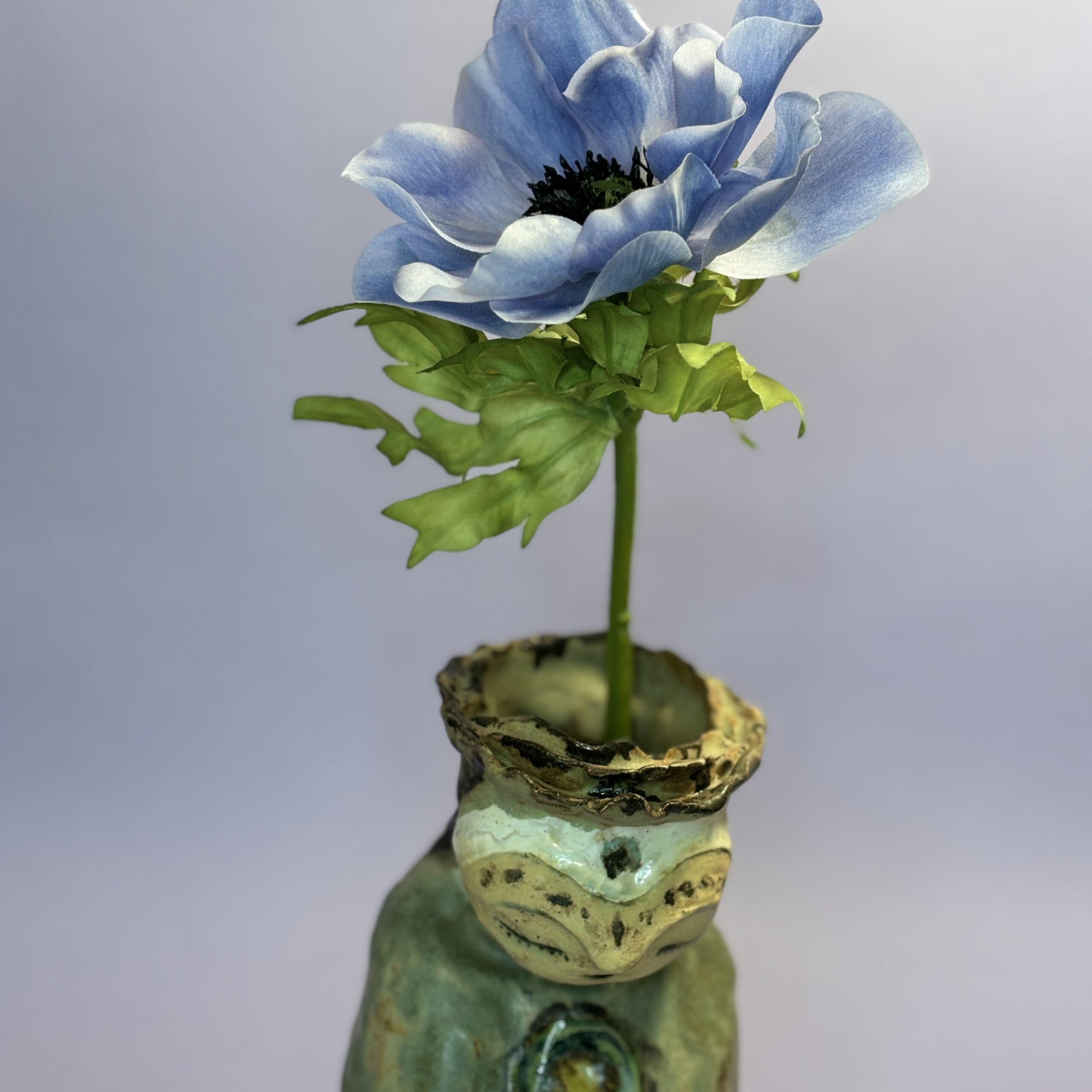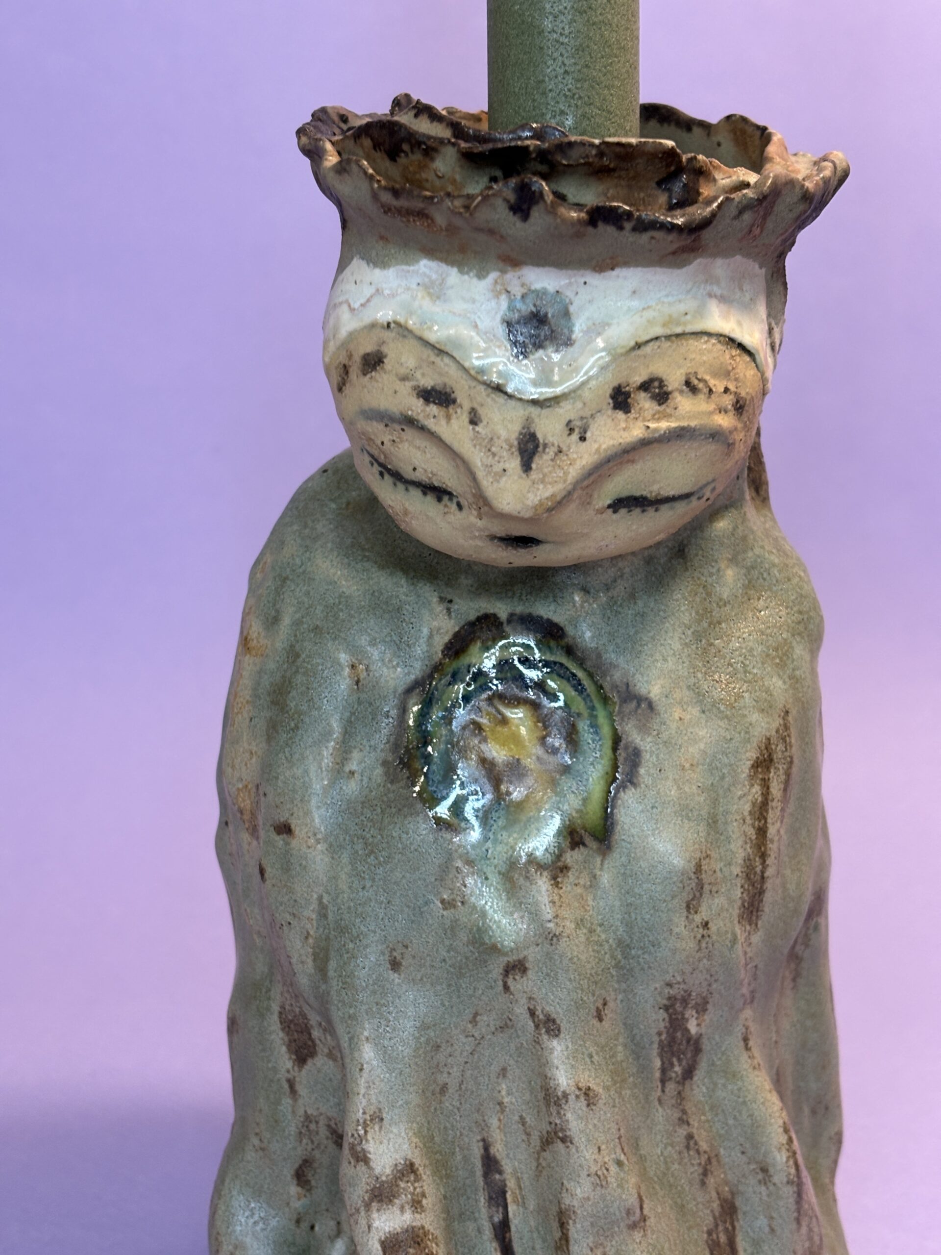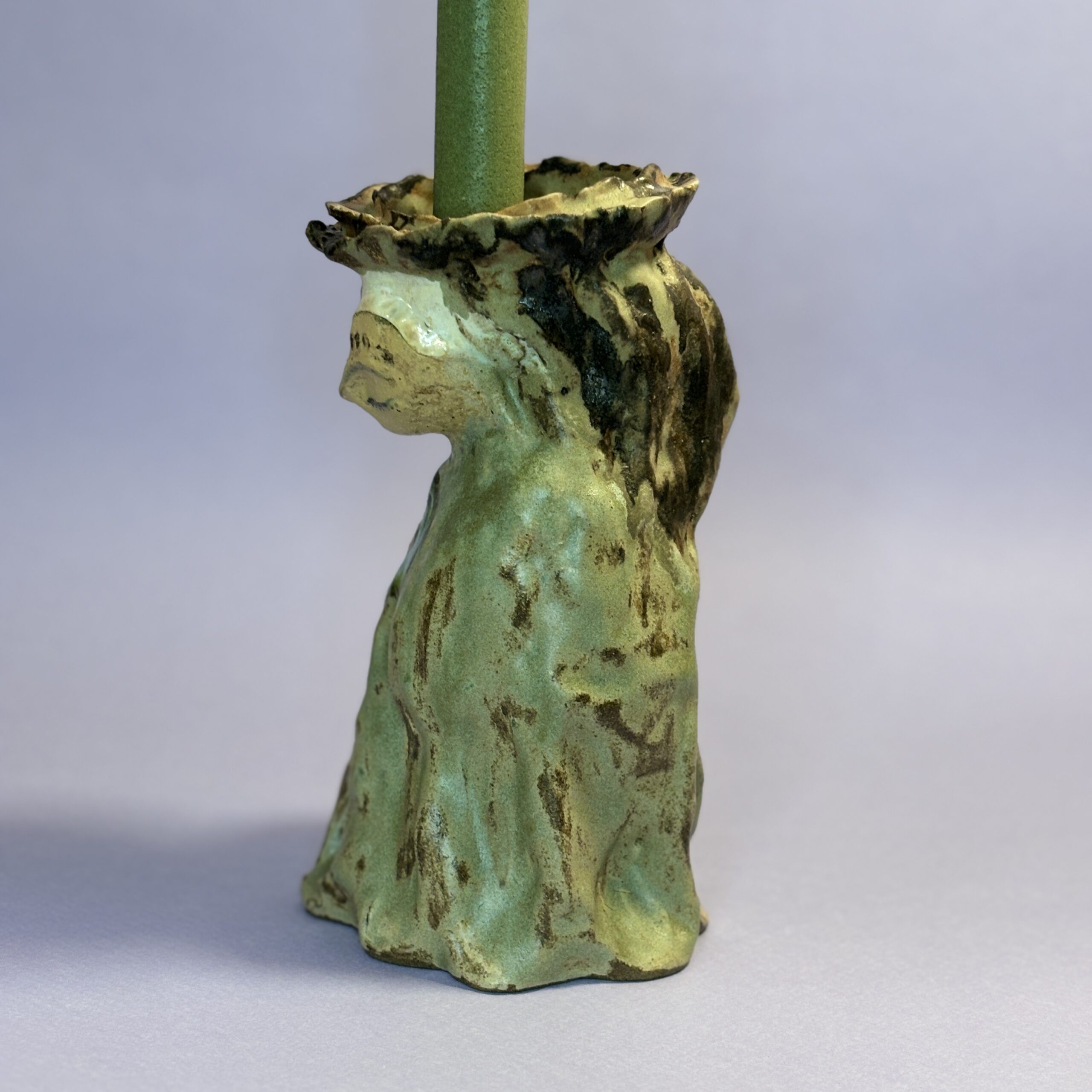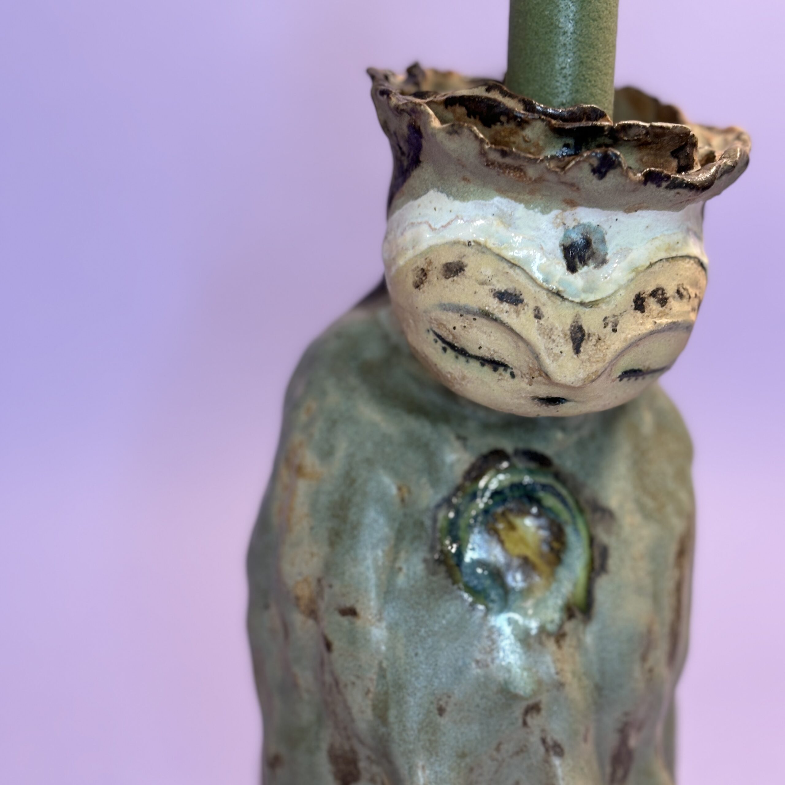 Figuren er håndmodelleret og dekoreret med glasur.