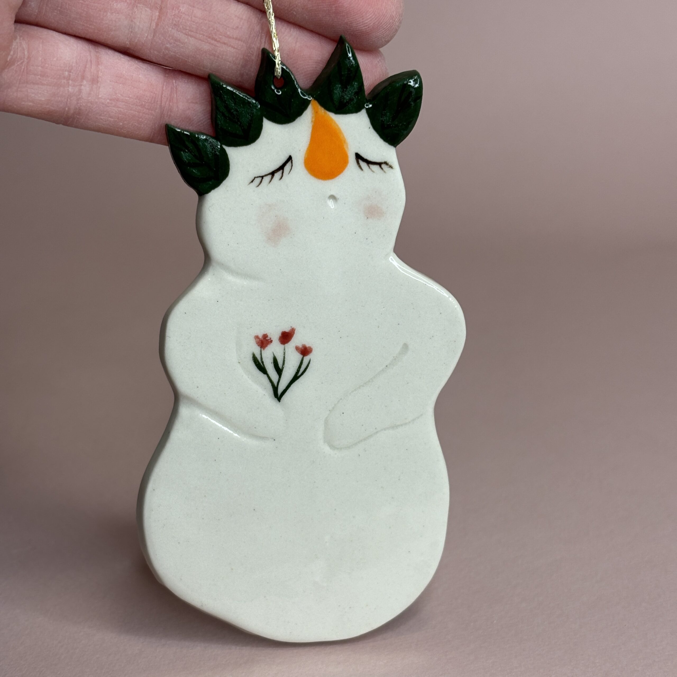 Sød snemand med hovedpynt.