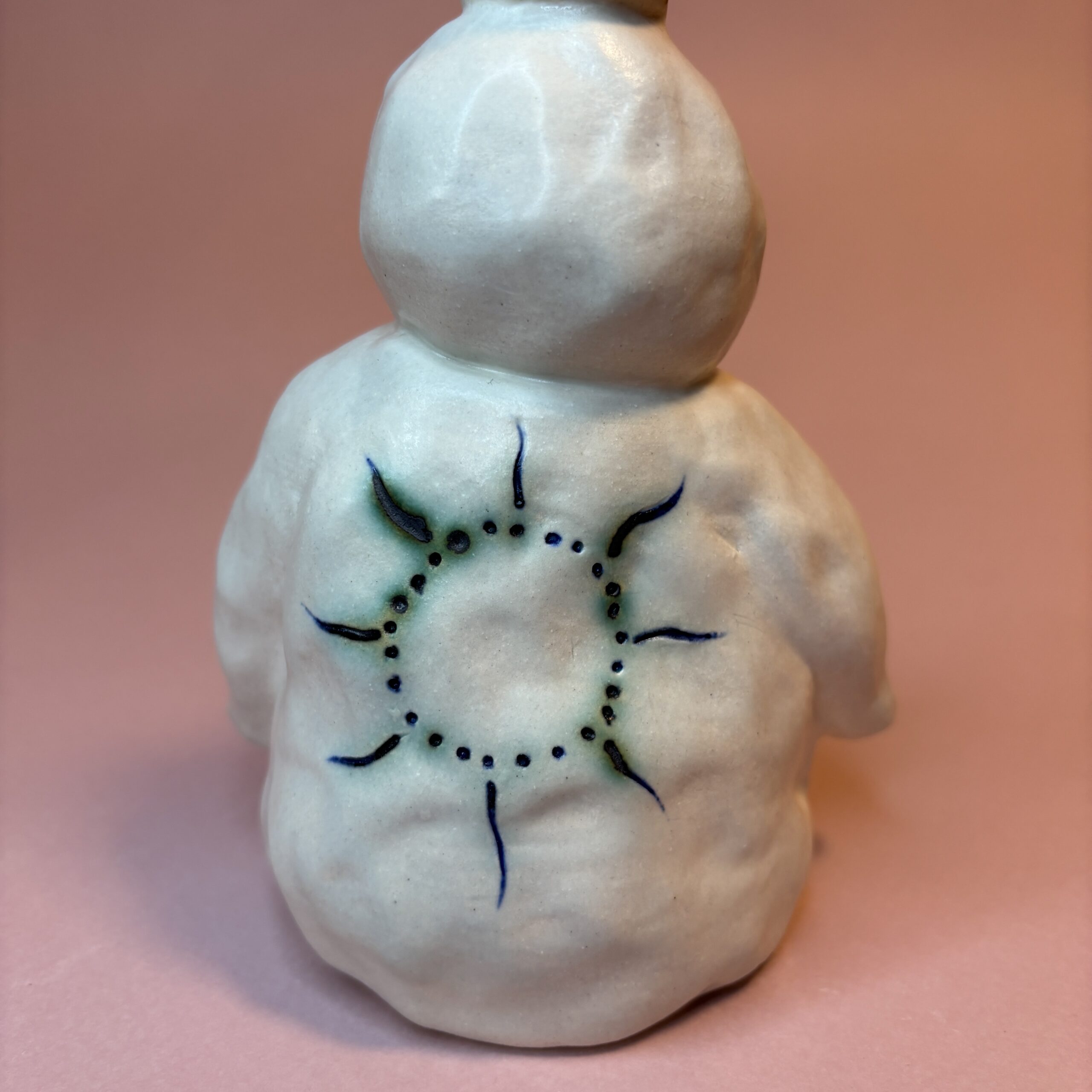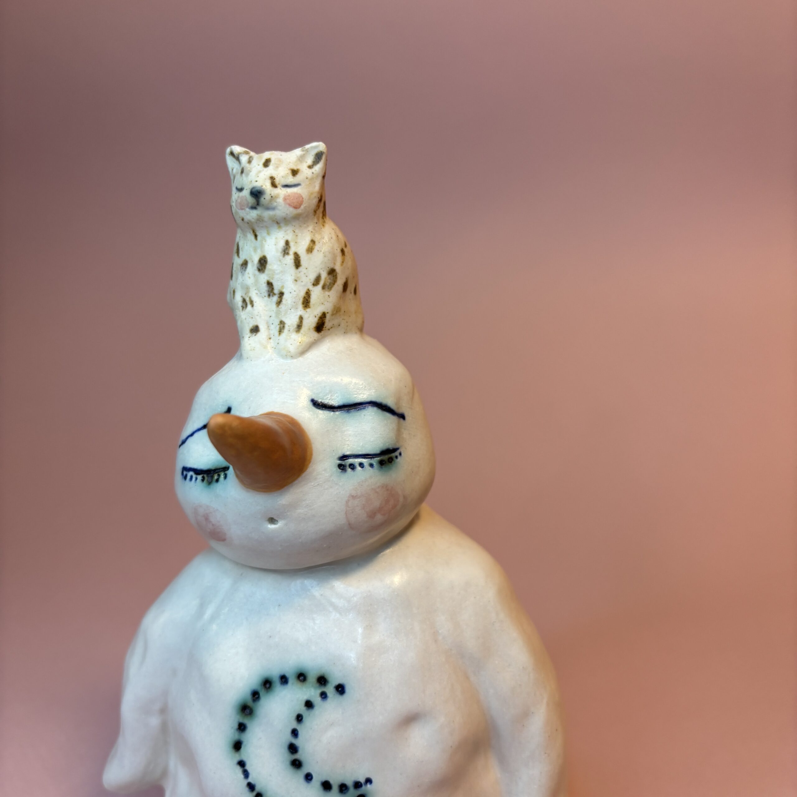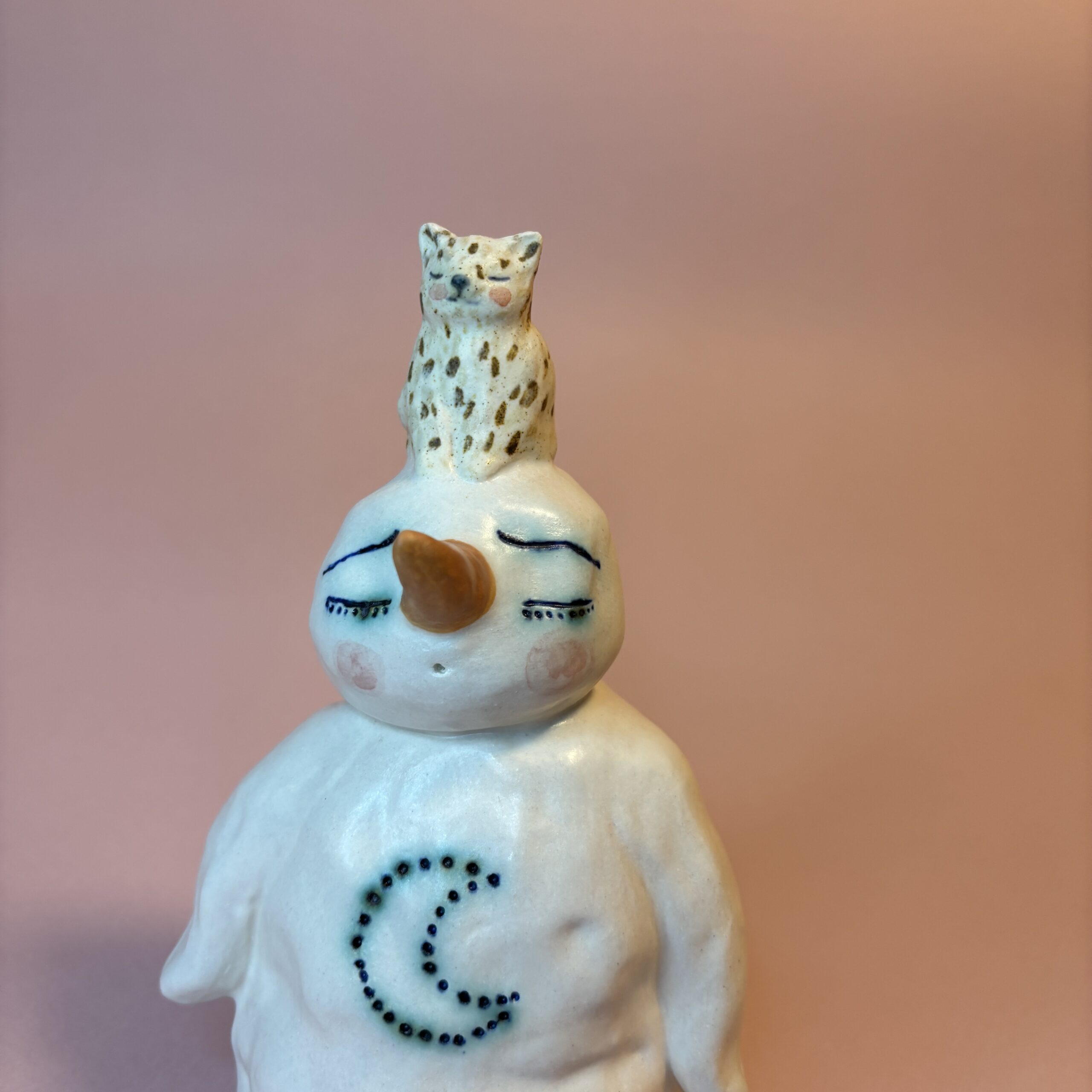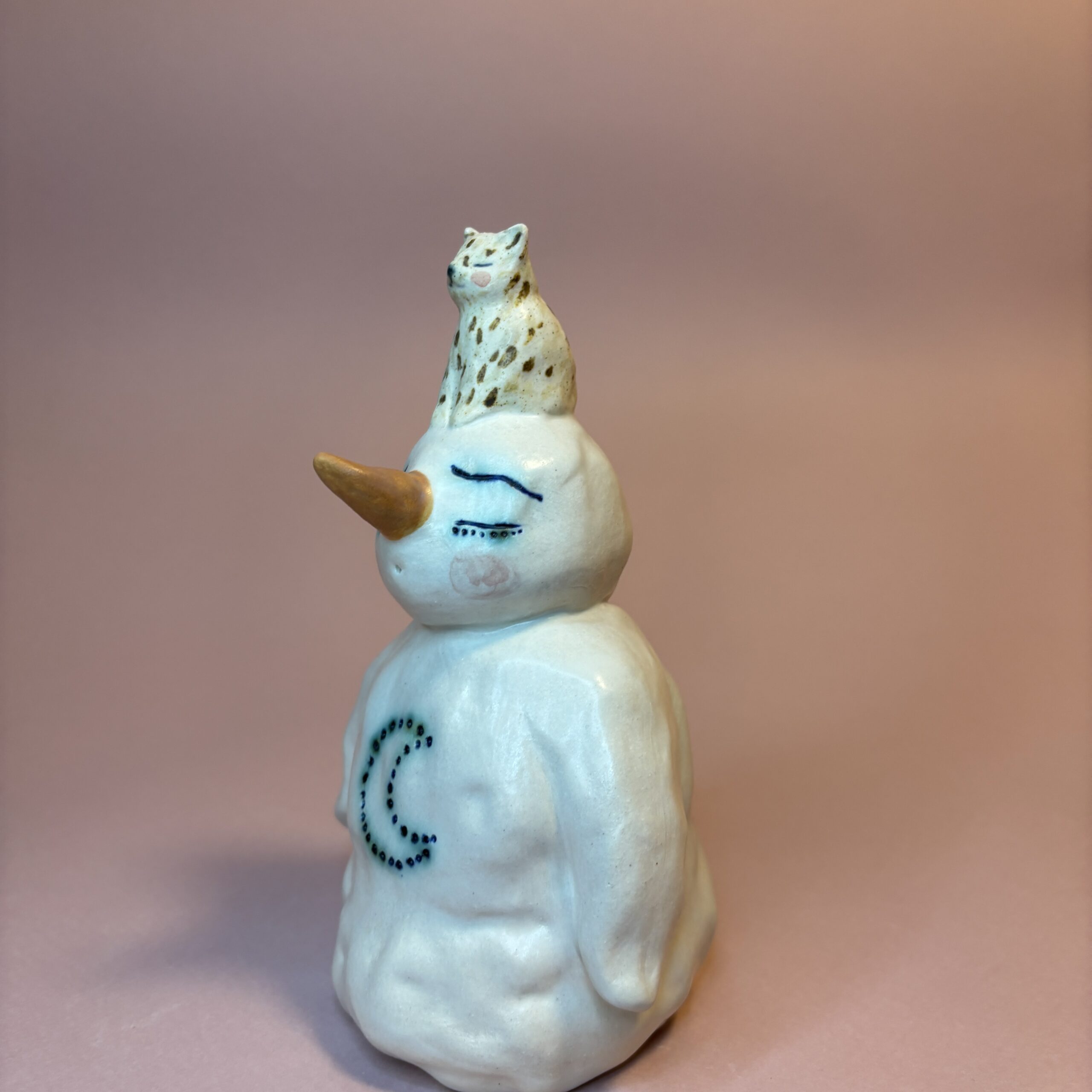Figuren er håndmodelleret i hvidt stentøjsler og dekoreret med glasur.