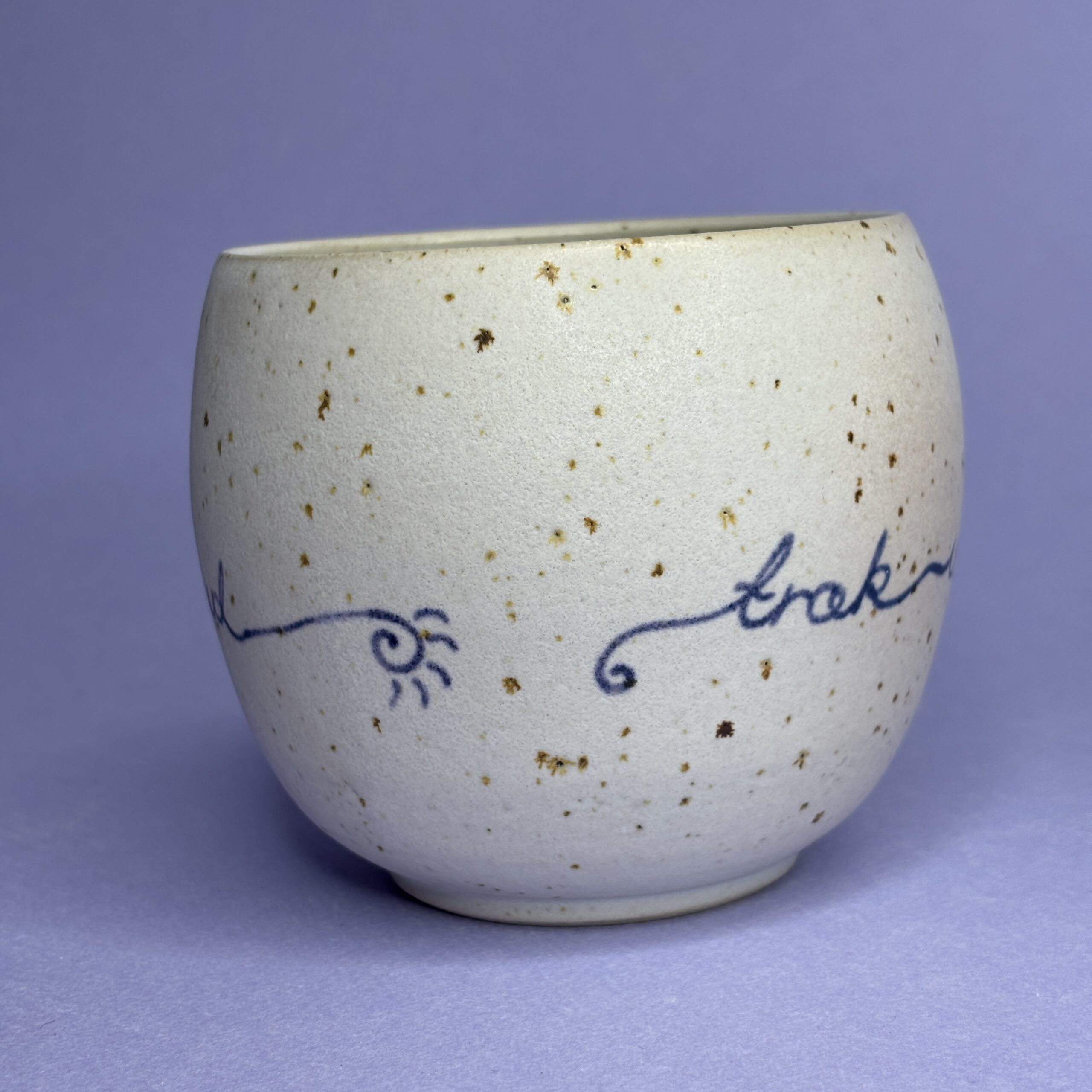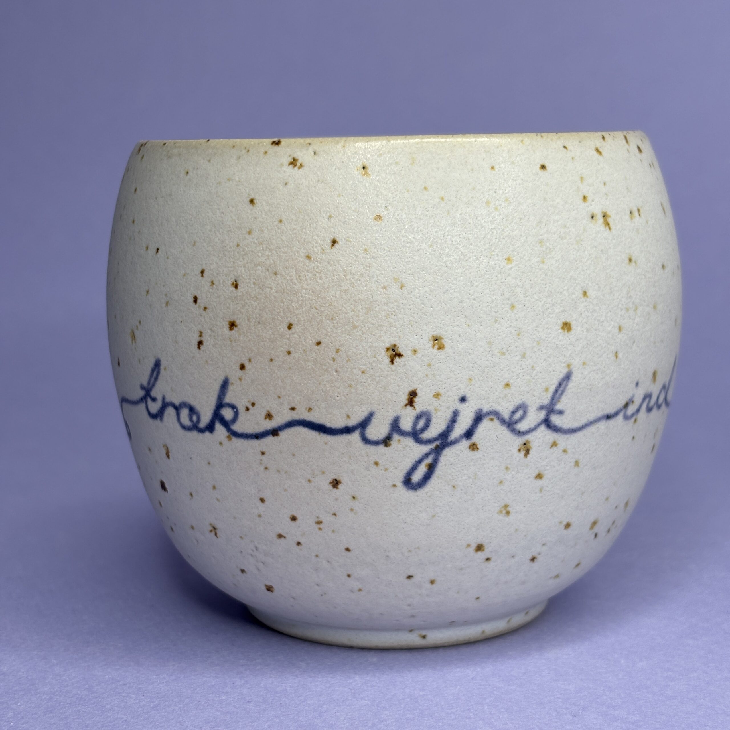 Koppen er drejet i stentøjsler og hånddekoreret med glasur.