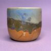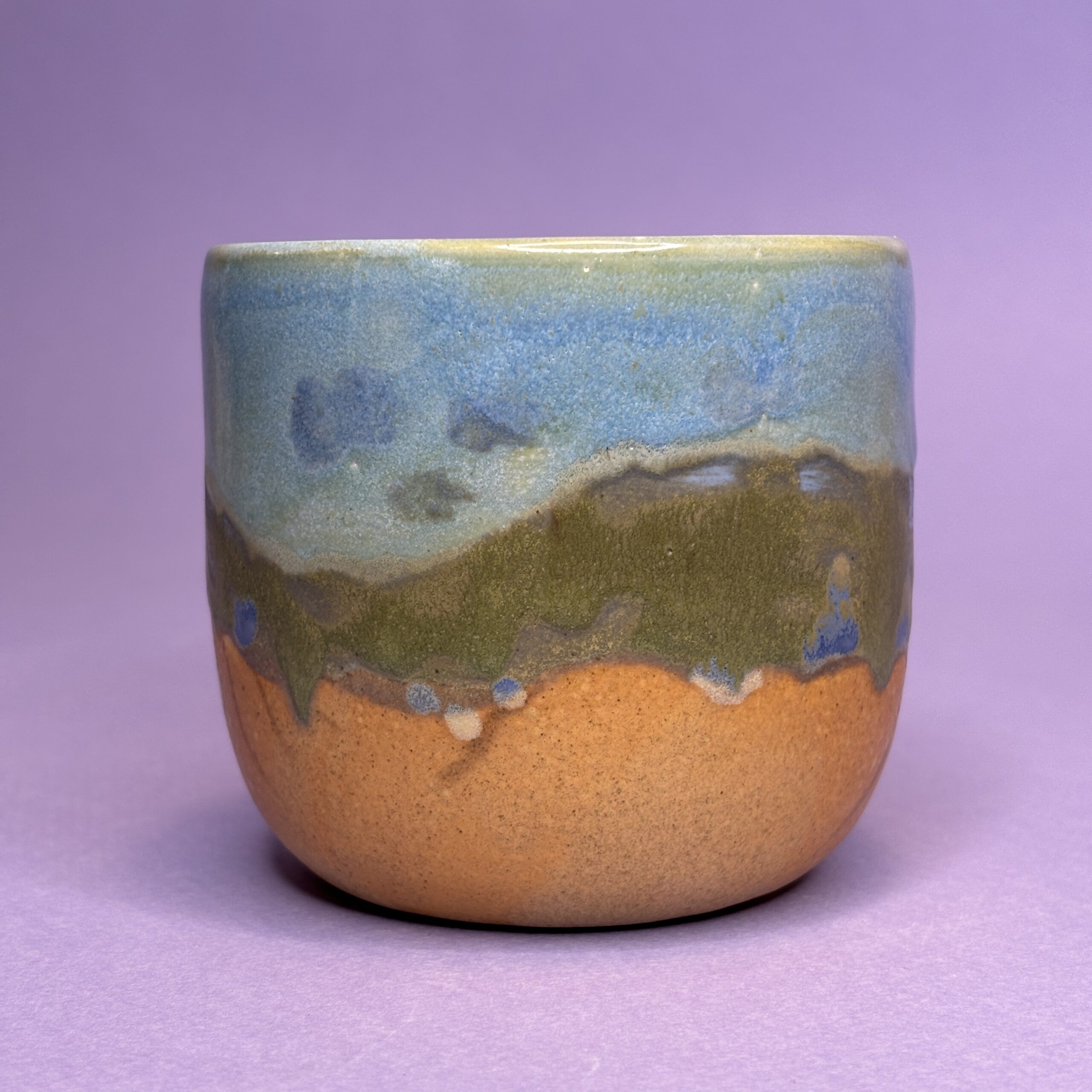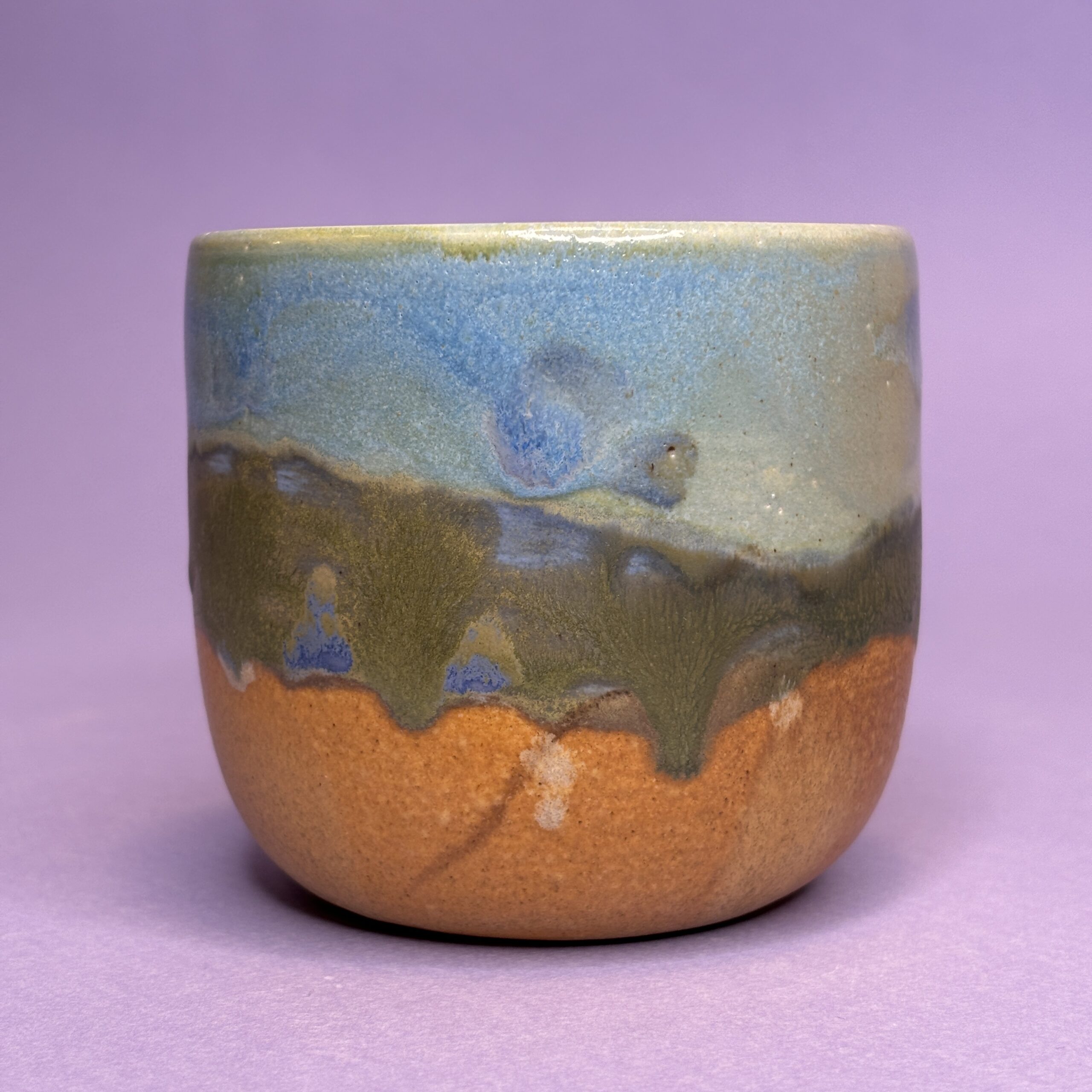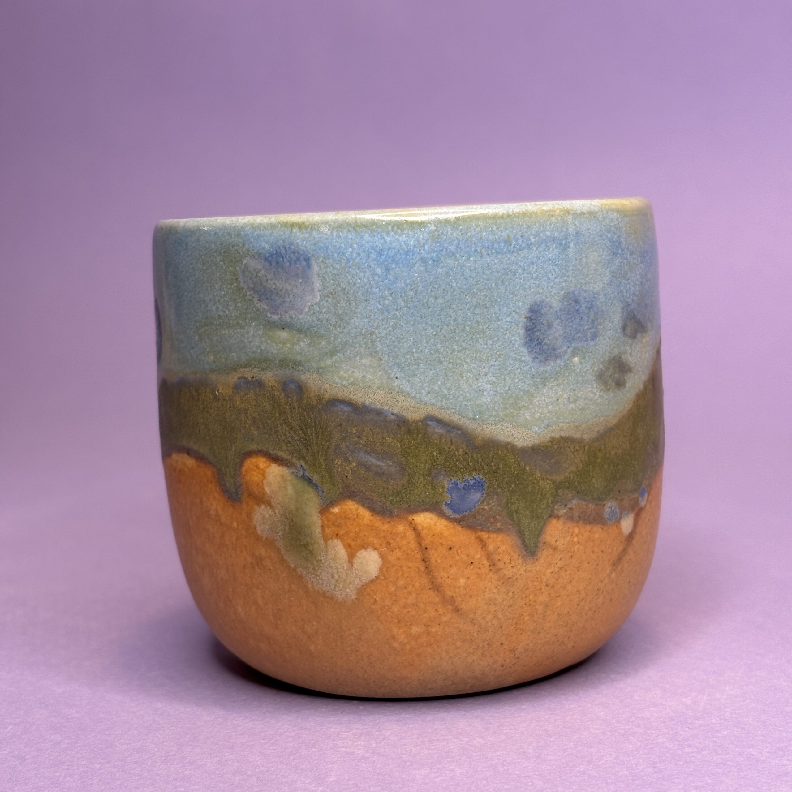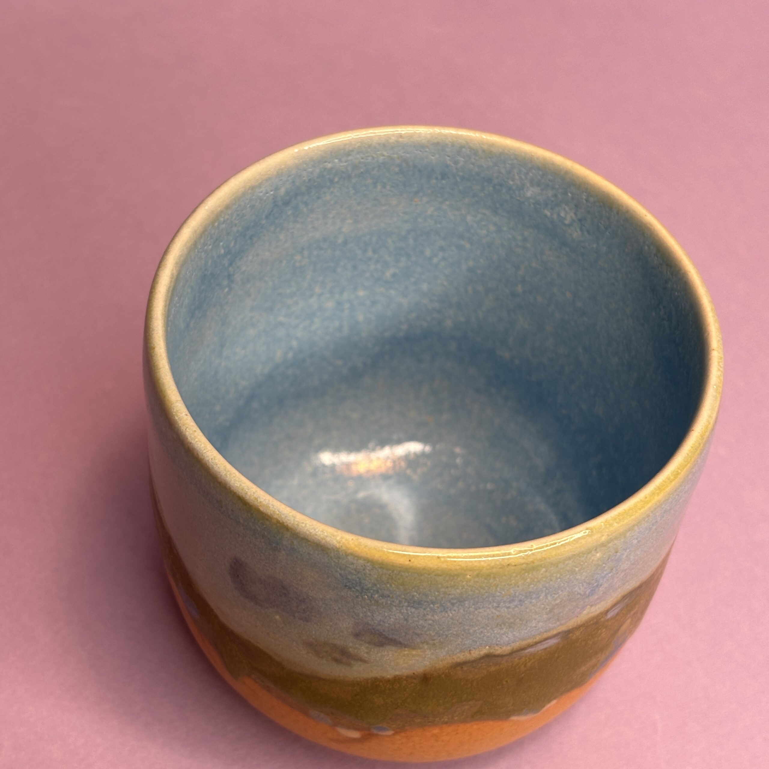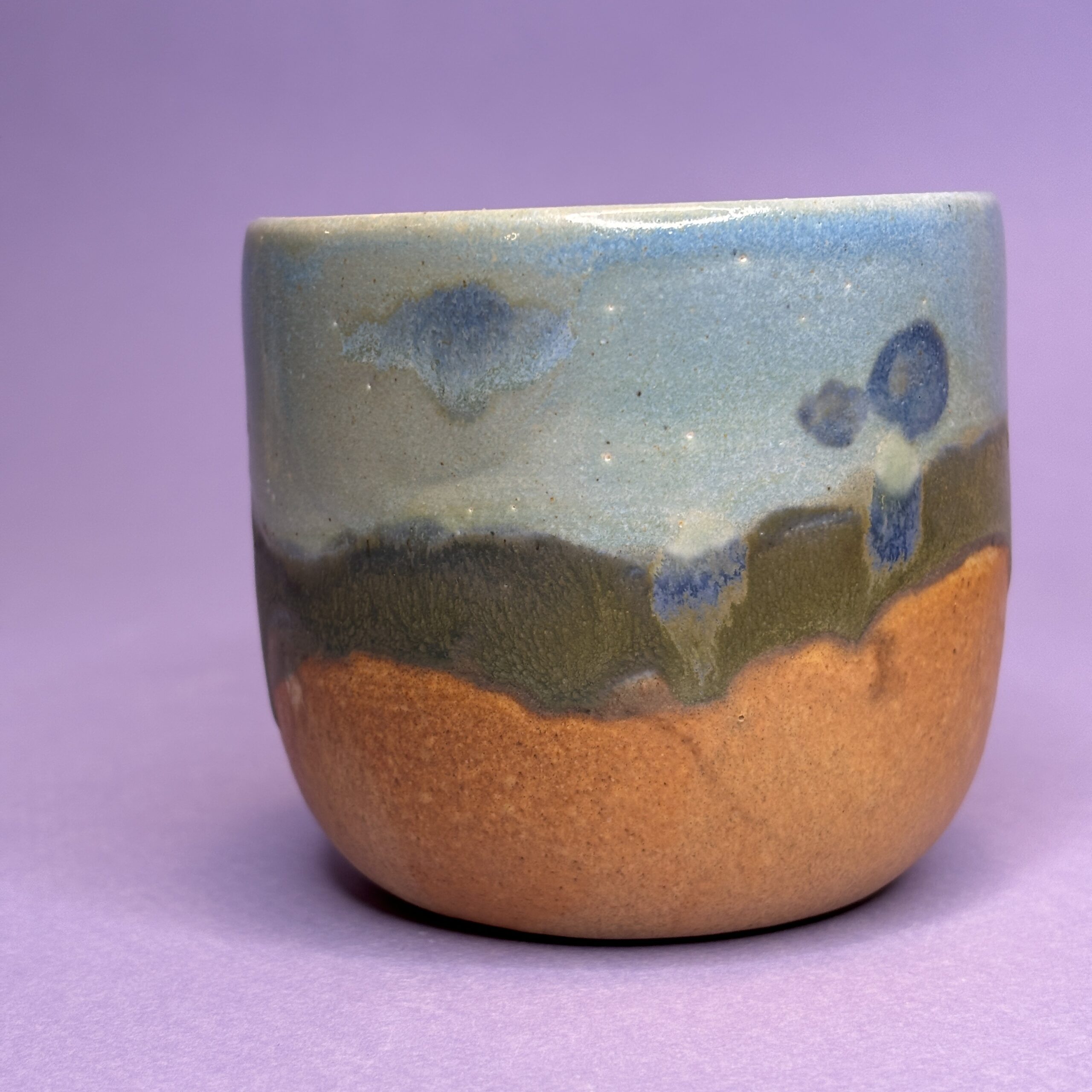 Koppen er drejet i stentøjsler og dekoreret med glasur.