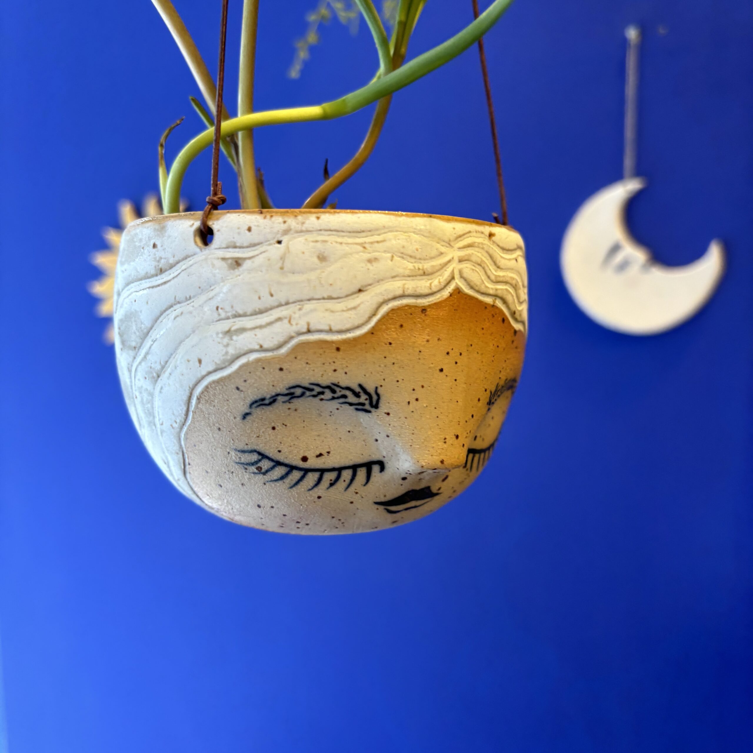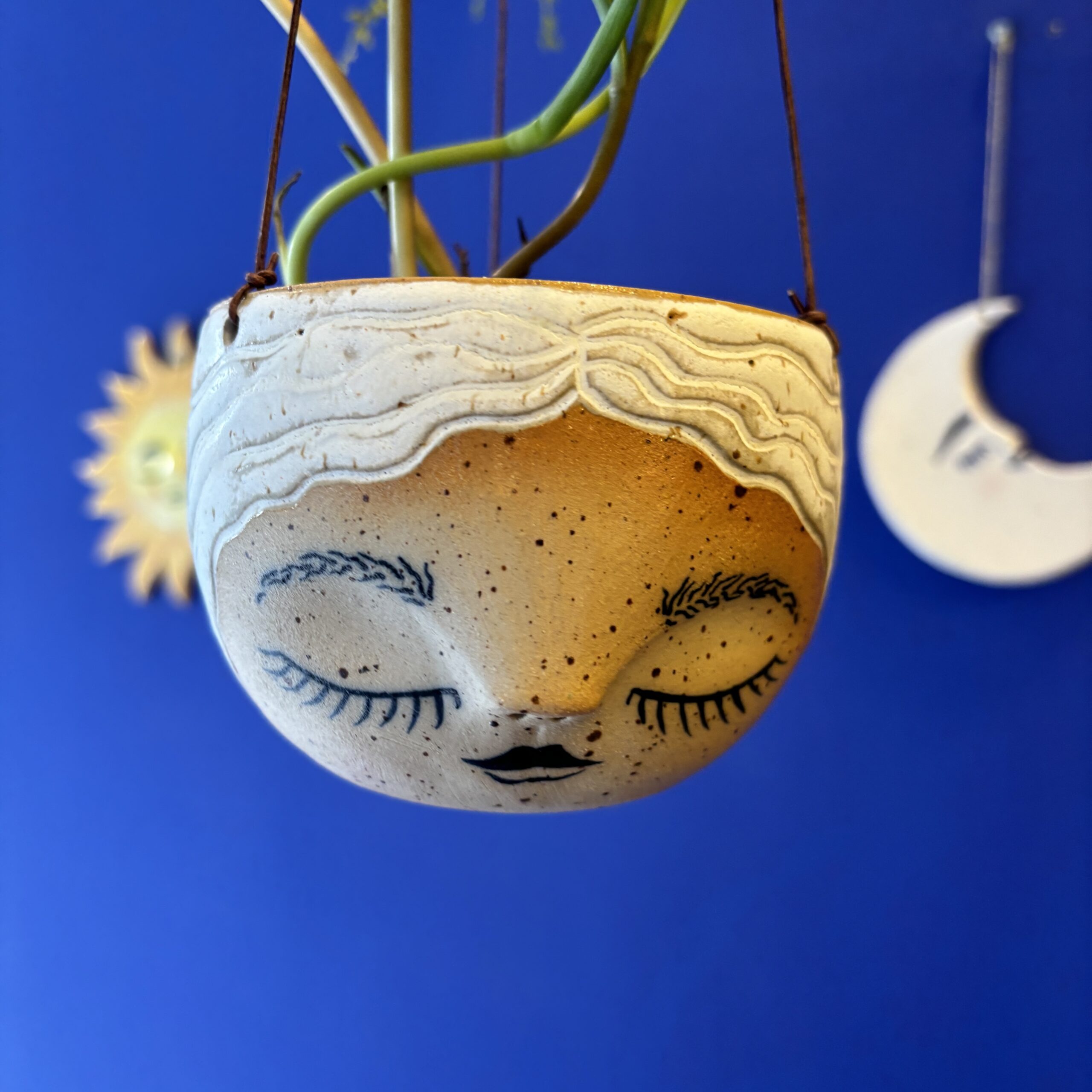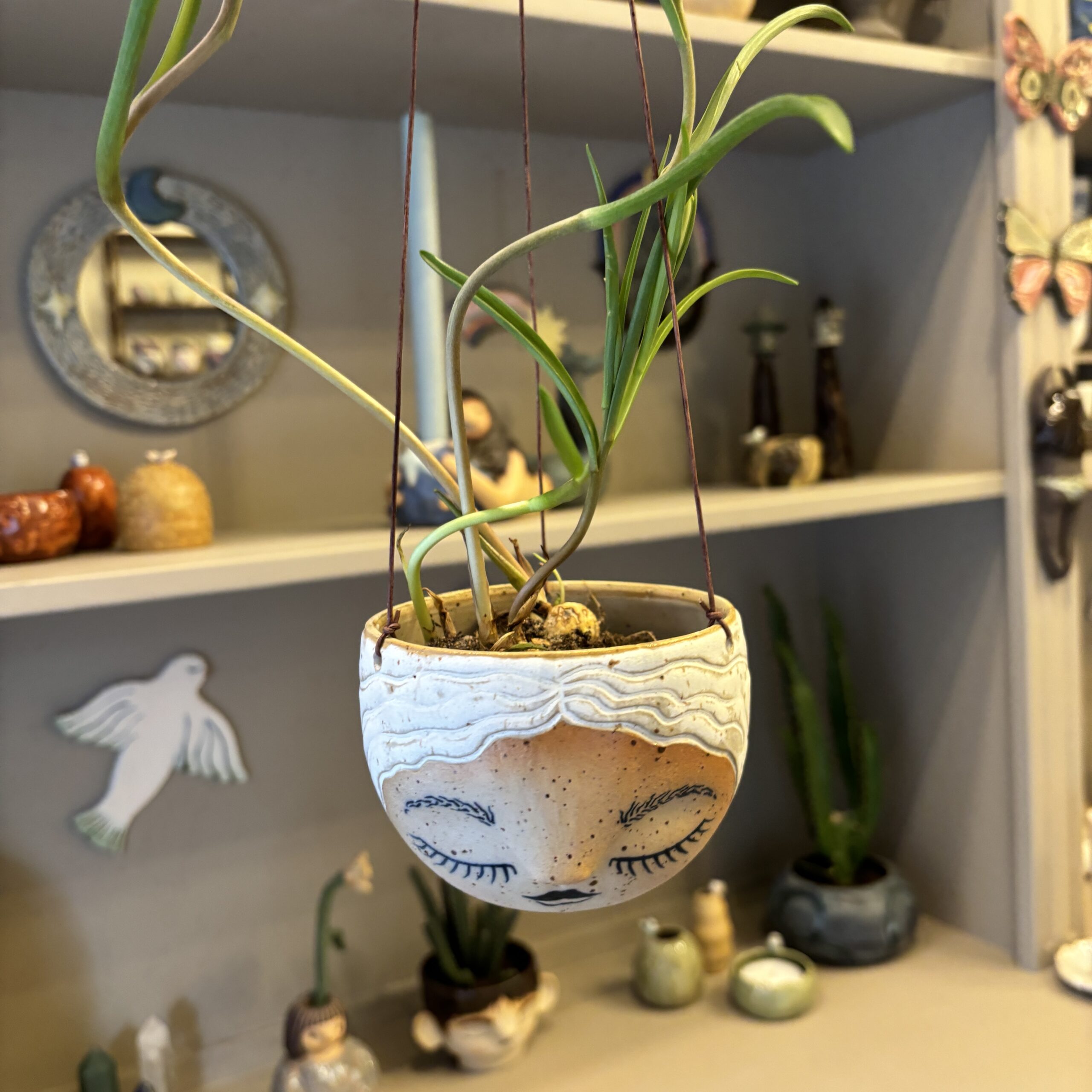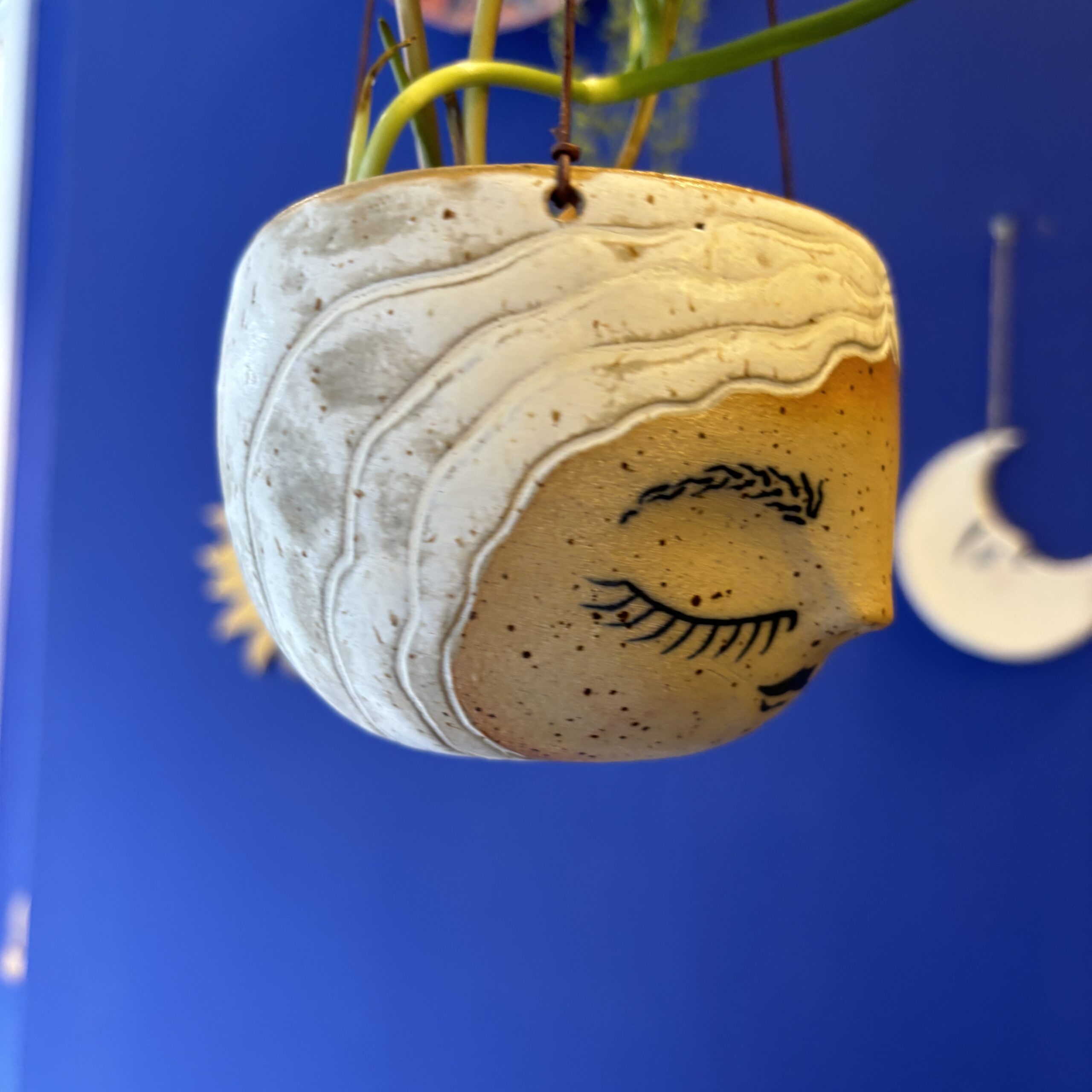 Hængepotte med yndigt ansigt – hæng potten i vinduet eller fra loftet i en krog. En potte der skaber hygge og stemning i hjemmet.